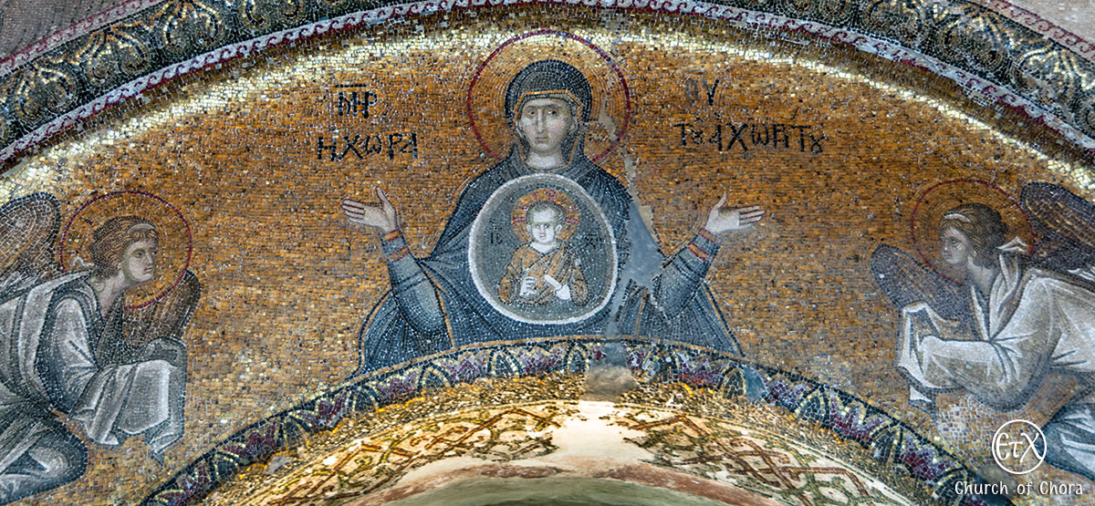 Chora Church (Chora Museum) entryway mosaics include Christ Pantocrator, Virgin Praying and the Angels, and Enthroned Christ and the Donor.