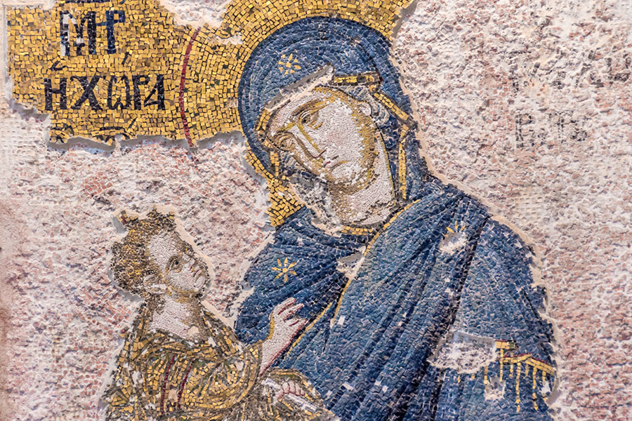 Chora Church (Kariye Museum) Naos includes the mosaics of Death of the Virgin, Virgin Virgin Hodegetria, and Jesus Christ.